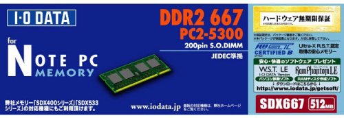 I-O DATA PC2-5300対応 増設DDR2 200ピン S.O.DIMM 512MB SDX667-512M